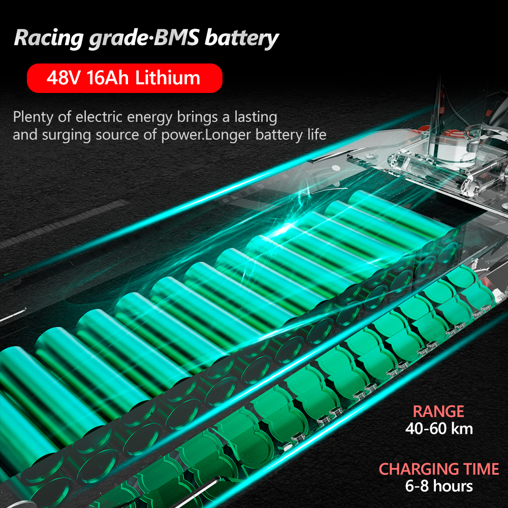 | spécification | Matériau du corps principal : alliage d'aluminium Moteur : 48 V 600 W. Batterie : 48 V 16 Ah. Adaptateur : 54,6 V, 2A Charge maximale : 150 KG Vitesse maximale : 40-45 KM/H Portée maximale : 30 à 50 KM par charge Temps de charge : 6-8H Capacité de pente : 10-25° |